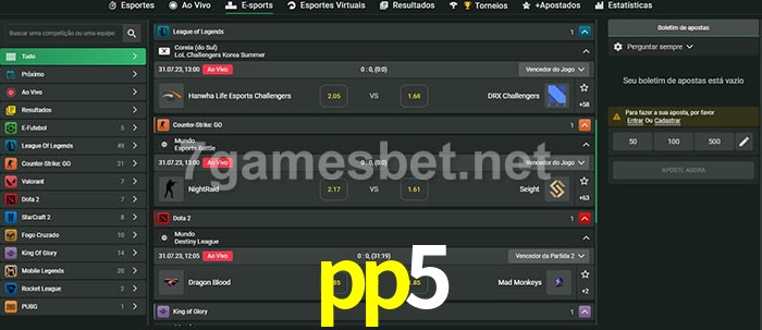 O pp5 oferece uma grande seleção de opções de apostas em e-sports com probabilidades competitivas